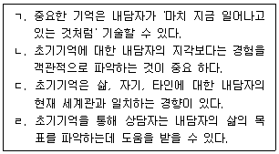 아들러(Adler) 이론의 주요 개념인 초기 기억에 관한 설명을 모두 고른 것은?