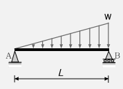 다음 그림과 같은 단순보에 등변분포하중이 작용할 때 전단력이 0이 되는 점에 대하여 A점으로부터의 거리를 구하면?
