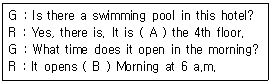 아래의 Guest와 Receptionist의 대화에서 ( ) 안에 알맞은 것은?