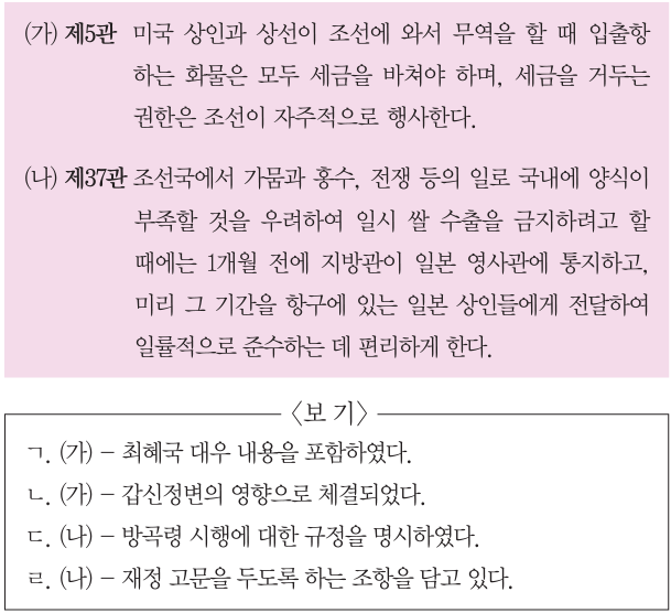 (가), (나) 조약에 대한 설명으로 옳은 것을 <보기>에서 고른 것은?