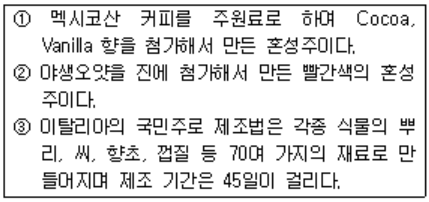 다음의 설명에 해당하는 혼성주를 옳게 연결한 것은?