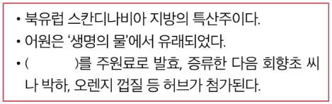 다음은 아쿠아비트(Aquavit)에 대한 설명이다. ( ) 안에 들어갈 내용은 무엇인가?