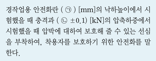 보호구 안전인증 고시에 따른 안전화의 정의 중 ( )안에 알맞은 것은?