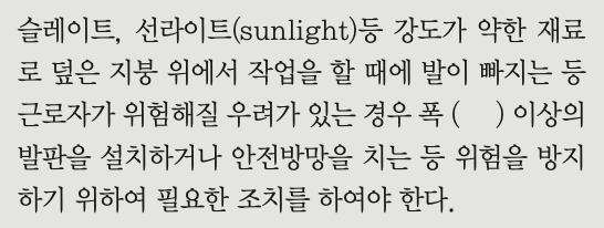 다음은 지붕 위에서의 위험방지를 위한 내용이다. 빈 칸에 알맞은 수치로 옳은 것은?