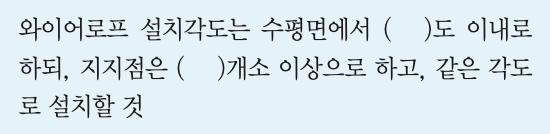 다음은 타워크레인을 와이어로프로 지지하는 경우의 준수해야 할 기준이다. 빈칸에 들어갈 알맞은 내용을 순서대로 옳게 나타낸 것은?
