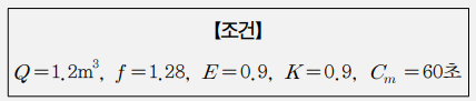 Power Shovel의 1시간당 추정 굴착 작업량을 다음 조건에 따라 구하면?