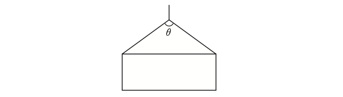 그림과 같이 2줄의 와이어로프로 중량물을 달아 올릴 때, 로프에 가장 힘이 적게 걸리는 각도(