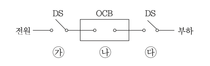 전류가 흐르는 상태에서 단로기를 끊었을 때 여러가지 파괴 작용을 일으킨다. 다음 그림에서 유입차단기의 차단순서와 투입순서가 안전수칙에 가장 적합한 것은?