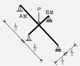 그림과 같은 교차보(Cross Beam) A, B부재의 최대 휨모멘트의 비로서 옳은 것은? (단, 각 부재의 E I는 일정함)