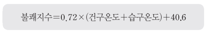 일반적으로 인체에 가해지는 온·습도 및 기류 등의 외적변수를 종합적으로 평가하는 데에는 “불쾌지수”라는 지표가 이용된다. 불쾌지수의 계산식이 다음과 같은 경우, 건구온도와 습구온도의 단위로 옳은 것은?
