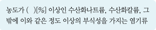 다음은 산업안전보건법령에 따른 위험물질의 종류 중부식성염기류에 관한 내용이다. ( )안에 알맞은 수치는?
