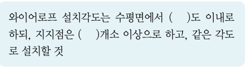다음은 타워크레인을 와이어로프로 지지하는 경우의 준수해야 할 기준이다. 빈칸에 들어갈 알맞은 내용을 순서대로 옳게 나타낸 것은?