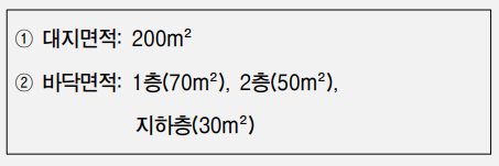 다음과 같은 조건의 지하 1층, 지상 2층 건축물의 용적률은?