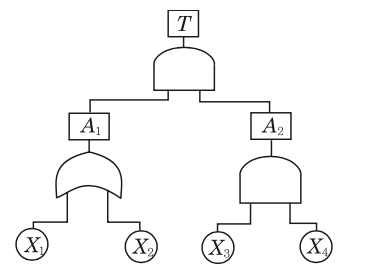[그림]과 같은 FT도의 컷셋(cutsets)에 속하는 것은?