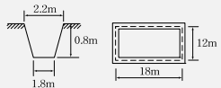 그림과 같은 줄기초파기의 파낸 토량은 얼마인가? (단, 토량환산계수 L=1.2)
