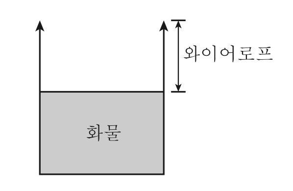 그림과 같이 2줄 걸이 인양작업에서 와이어로프 1줄의 파단하중이 10,000[N], 인양화물의 무게가 2,000[N]이라면 이 작업에서 확보된 안전율은?