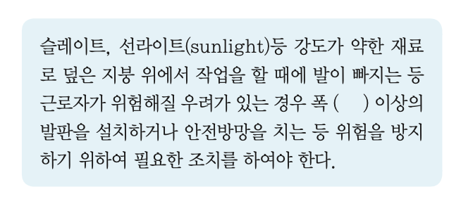 다음은 지붕 위에서의 위험방지를 위한 내용이다. 빈칸에 알맞은 수치로 옳은 것은?