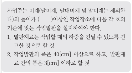 다음은 비계를 조립하여 사용하는 경우 작업발판 설치에 관한 기준이다. ( )에 들어갈 내용으로 옳은 것은?