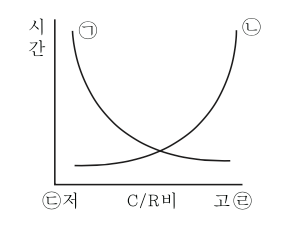다음 그림은 C/R비와 시간과의 관계를 나타낸 그림이다. ㉠~㉣에 들어갈 내용이 맞는 것은?