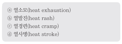 다음 중 열 중독증(heat iillness)의 강도를 올바르게 나열한 것은?