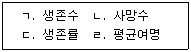 아래 보기 중 생명표의 표현에 사용되는 인자들을 모두 나열한 것은?