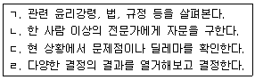 상담에서 나타날 수 있는 윤리적 갈등의 해결단계를 바르게 나열한 것은?