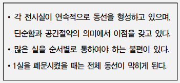 다음과 같은 특징을 갖는 미술관 전시실의 순회형식은?