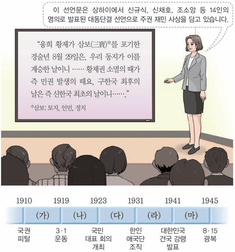 다음 선언문이 발표된 시기를 연표에서 옳게 고른 것은?
