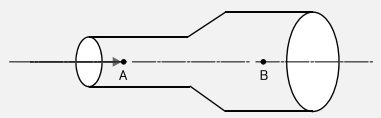 물의 속도는 A보다 B가 크며, 압력도 A보다 B가 크다.