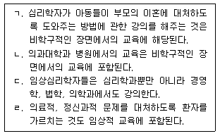 임상심리사의 역할 중 교육에 관한 설명으로 옳은 것을 모두 고른 것은?