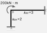 가 작용하고 각 부재의 강비가 그림과 같을 경우