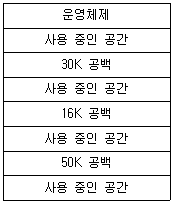 다음 그림과 같은 기억장소에서 16K를 요구하는 프로그램이 두 번째 공백인 16K의 작업 공간에 배치되는 기억장치배치 전략은?