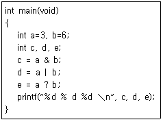 다음 C언어는 두 수의 비트별 AND, OR, XOR을 구하는 프로그램이다. 실행 결과는?
