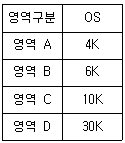 주기억장치 관리기법 중 최악 적합 기법을 사용할 때, 5K의 프로그램이 할당되는 영역은? (단, 영역 A, B, C, D는 모두 비어 있다고 가정한다.)
