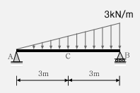 다음 그림과 같은 보에서 중앙점(\rm C점)의 휨모멘트(\rm M_c)를 구하면?