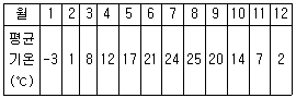 월평균기온이 다음과 같은 지역의 한랭지수는?