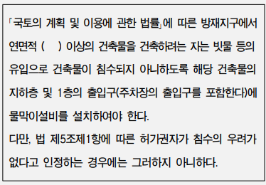 다음은 물막이설비의 설치에 관한 기준 내용이다. ( ) 안에 알맞은 것은?