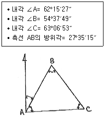 다음 그림과 조건을 이용하여 계산한 측선 CA의 방위각은?
