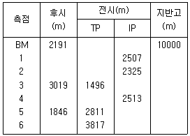 아래 표는 수준측량에 의한 야장이다. 측점 6의 지반고(m)는?