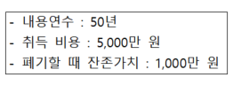 다음 조건에서 정액법에 의한 임업기계의 연간 감가상각비는?