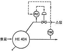 스팀을 사용하여 원료가스를 가열하기 위하여 [그림]과 같이 제어계를 구성하였다. 이 중 온도를 제어 하는 방식은?