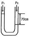 수은을 이용한 \rm U자관식 액면계에서 그림과 같이 높이가 70\rm cm일 때 P_2는 절대압으로 약 얼마인가?