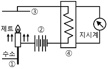 다음 [그림]은 불꽃이온화 검출기(FID)의 구조를 나타낸 것이다. ①~④의 명칭으로 부적당 한 것은?