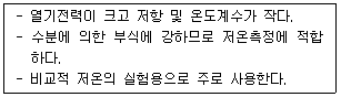 계측에 사용되는 열전대 중 다음(보기)의 특징을 가지는 온도계는?