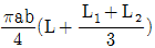 그림과 같은 타원형 위험물 탱크의 내용적을 구하는 식을 옳게 나타낸 것은?