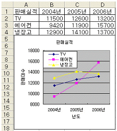 차트 제목인 '판매실적'은 [A1] 셀 데이터 값이 자동으로 설정된 것이다.