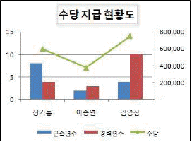 두 개의 차트 종류가 혼합되어 있으며, 값 축이 두 개로 설정된 이중 축 혼합형 차트이다.
