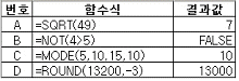 아래 표에서 주어진 함수식에 대한 결과값이 옳지 않은 것은?