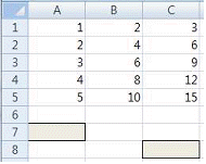 다음 중 아래 시트에서 [A7] 셀에 수식 =$A$1+$A2를 입력한 후 [A7] 셀을 복사하여 [C8] 셀에 붙여넣기 했을 때, [C8] 셀에 표시되는 결과로 옳은 것은?