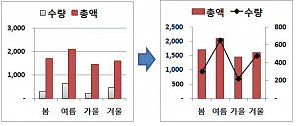 ‘수량’ 계열의 차트 종류를 변경하였다.